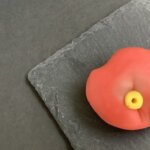 練り切り製 1月の季節のお菓子は練り切り製で寒椿です。中はこしあんが入っています。 お店のロゴも椿なんですけど、これは練り切りをイメージして作ったものなんです。 ...