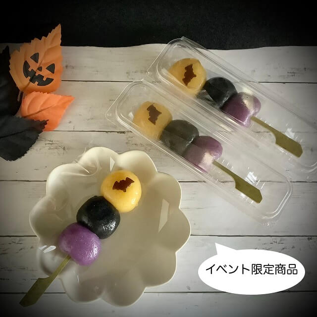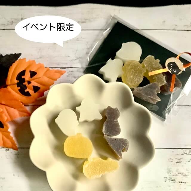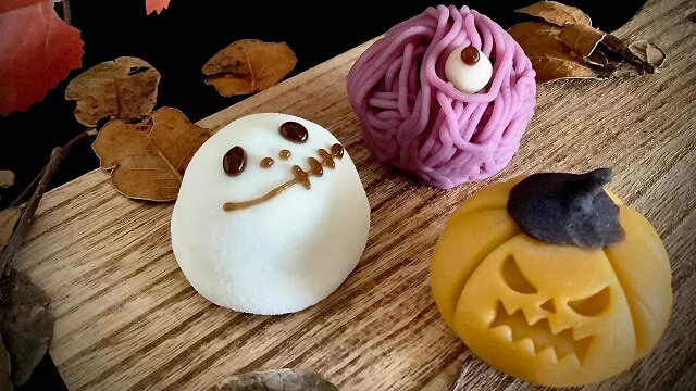 季節の上生菓子でハロウィンモチーフのものを販売しています。消費期限は翌日まで。