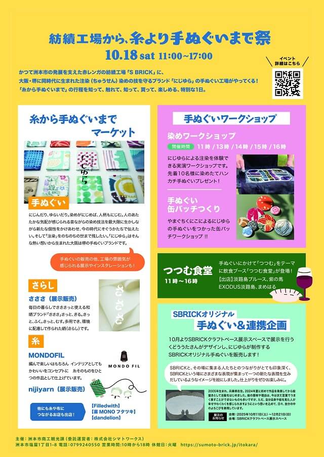 10月18日は洲本市S BRICKにて糸より手ぬぐいまで祭りに参加します!