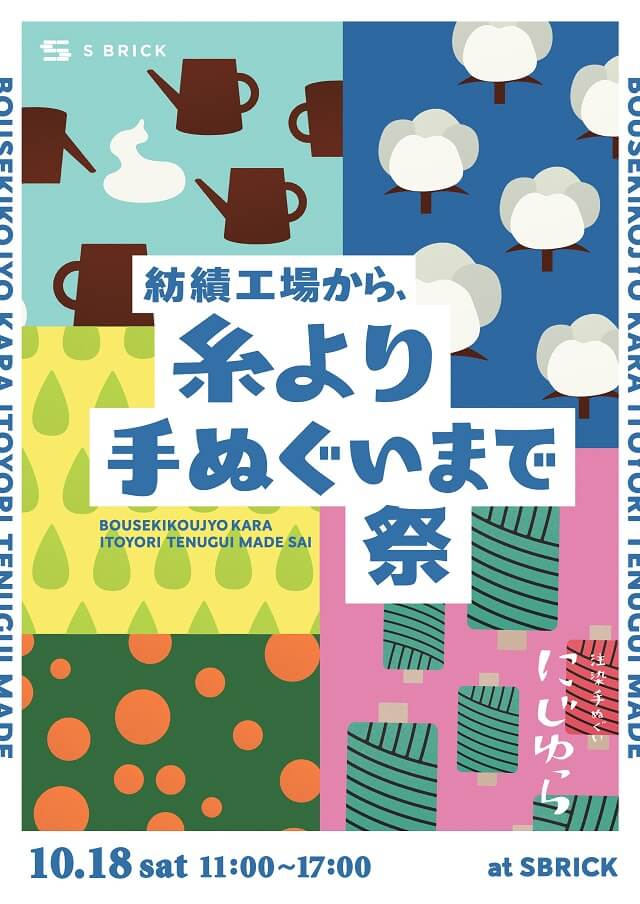 10月18日(土)は洲本市にあるS BRICKというところで開催される【糸より手ぬぐいまで祭り】のイベントに参加するため、店舗はお休みします。